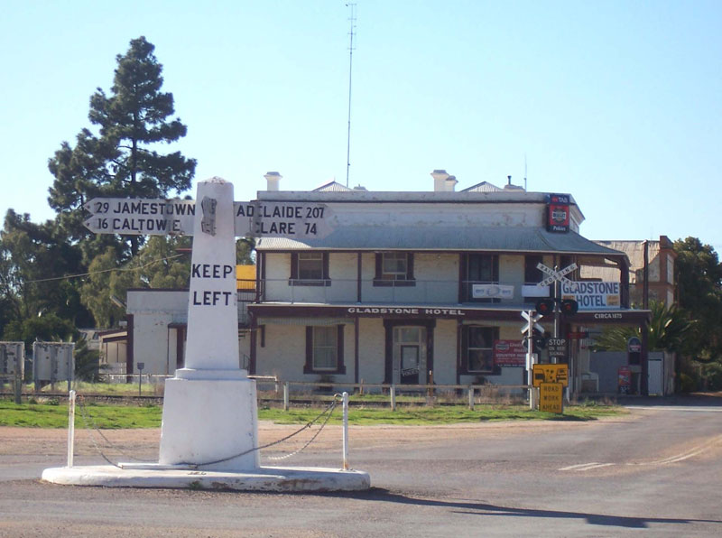 A Wheatbelt service town, it was once a major railway head. It boasts the largest grain silos in South Australia. Gladstone is the southern gateway to the Flinders Ranges via the Horrocks Highway (previously Main North Road).
