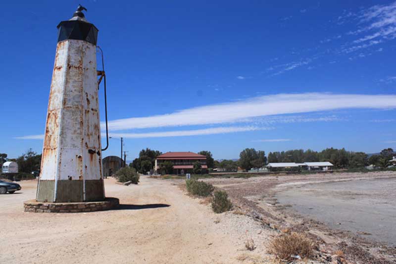 A lighthouse was erected at the end of the jetty in 1894, replacing the Port Germein Lightship. The lighthouse was manned until July 1917, when it was replaced by an AGA flashing light. The lighthouse was re-established at its current site in 1975.
