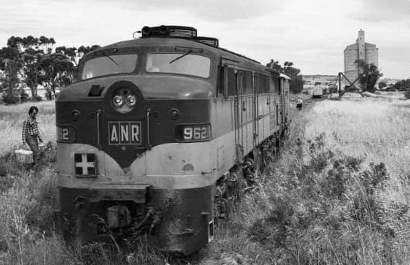 AN diesel locomotive 962 at Robertstown about to work the goods train back to Dry Creek in March 1981. Photo credit: Bob Sampson.