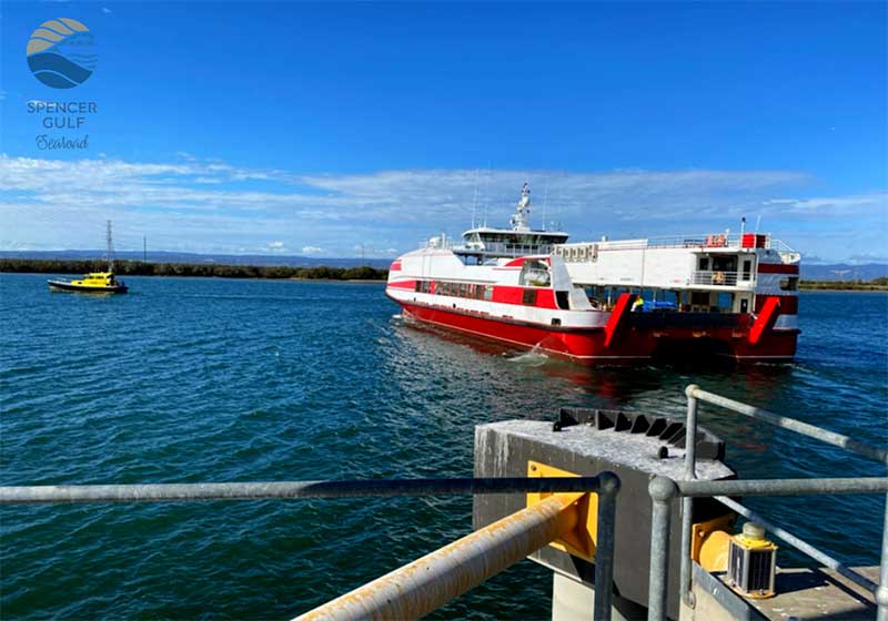 Spencer Gulf Searoad operated a passenger and vehicular ferry across Spencer Gulf between Wallaroo on Yorke Peininsula and Lucky Bay on Eyre Peninsula. Each sailing can take up 2 and a half hours each way, pending weather. Not including embarking or disembarking. The sailing is approximately 60kms one way.