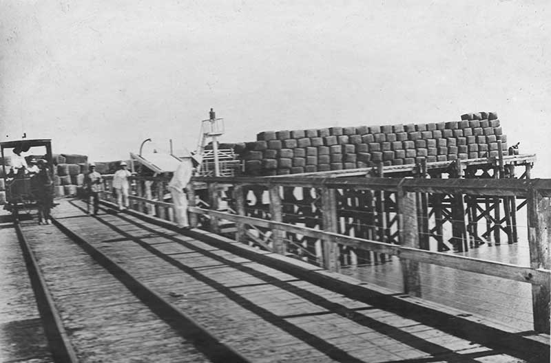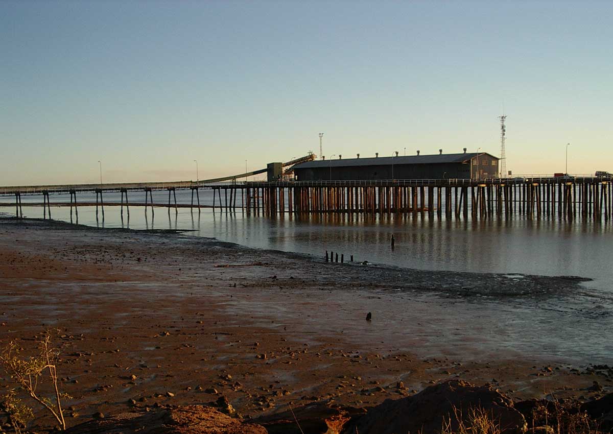 The first jetty was built in 1885. The timing was impeccable. That same year Charlie Hall discovered gold at Halls Creek and miners and prospectors poured into the port on their way to the goldfields.The jetty ran out across the mudflats beyond the town and the ships that brought the miners in were only to eager to depart with cargoes of gold (1886), pearl shells and wool. The goldrush was shortlived and by the 1890s the port was used almost exclusively for the export of live cattle and sheep.