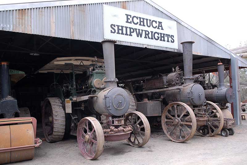 Echuca's huge 1865-built timber wharf, with its three wharf decks to accommodate the river's ever-changing water levels, is still the star attraction. Here, visitors can wander over the original structure. The wharf is still operational, and among the relics from the past found within it are a blacksmith's shop with operation furnace, and the original railway station where goods were offloaded straight from trains and onto the ships that plied the Murray.