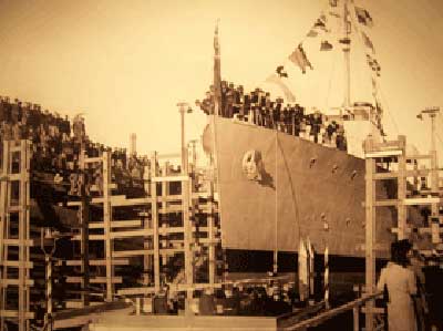 HMAS Whyalla, the first ship built at Whyalla being launched in 1941.