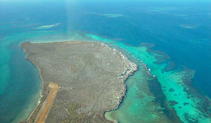 The islands a mix of ancient reefs, sedimentary rocks, living reefs, lagoons, coral debris and sand that combine to form their unusual appearance. Each of the carbonate platforms rises 40 m or so from the shelf below. In general terms, each consists of a windward reef, leeward reef, and lagoon with a central platform. The islands - located on the central platforms or on the leeward reefs - are mainly rocky (composed of limestone or coral rubble) with scant vegetation cover and rise only 3 to 5 m above sea level.