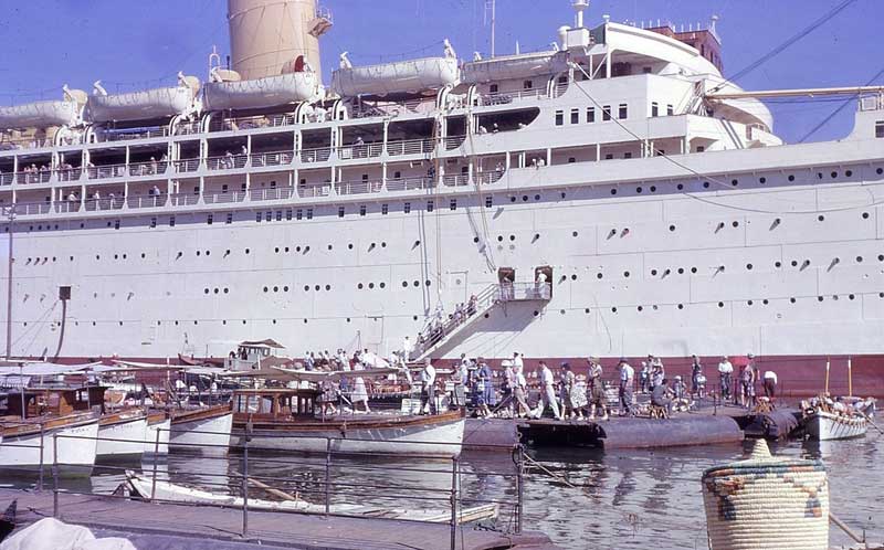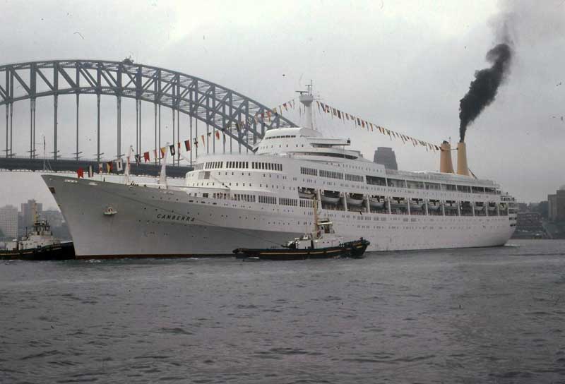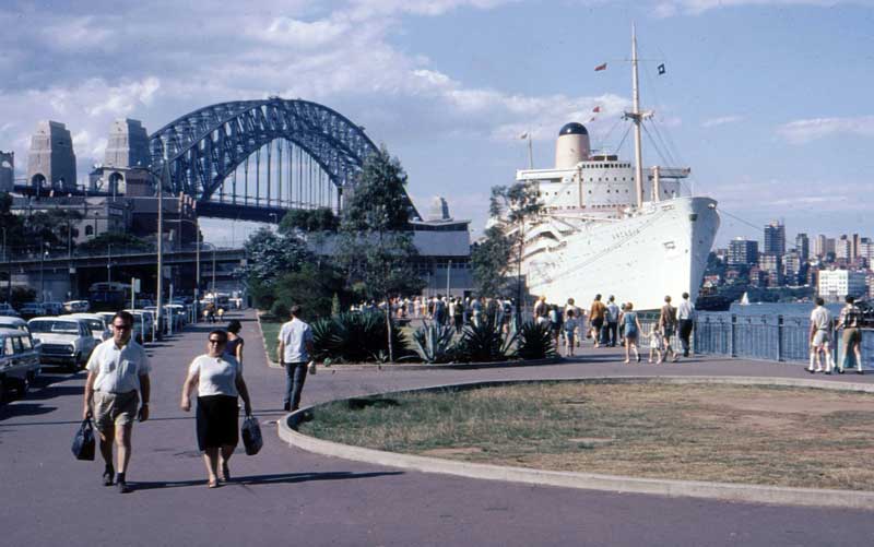 In April 1959, the whole ship was air-conditioned, the first class cabins were modernised and additional sundeck space was provided aft on her Promenade Deck. The overhaul was due to P&O's plan to raise her to the same standard as the new Canberra (at that time well under construction at Harland & Wolff's Belfast yards). After its completion, she Arcadia returned to the Australian run, which she plied for the next ten years, interspersed with cruising from both Australia and Britain. Among the many British migrants who came to Australia on Arcadia was British Comedian Spike Milligan and his wife who arrived at Sydney on 4th July 1962. At that time, first class, "Boomerang" return passage trip cost £145.