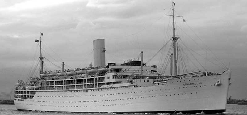 The last 'Strath' to be built, she also had the shortest life. Within 26 months of her maiden voyage to Australia, the British War Office seconded her as World War II troop carrier. Like all the 'Straths', she received her call-up orders on 4th February 1940. Strathallan was the only 'Strath' to not survive its period of military duty, being torpedoed and sunk by German U-Boat 562 in bright moonlight and fine weather shortly after passing through the Straits of Gibraltar about 75 kilometres (45 miles) off Bougie. She was hit in the engine room on the port side at 2.25 am on 21st December 1942. Two engineer officers and two Indian engine-room crew were killed in the explosion.