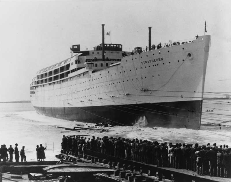 The fourth 'Strath' to be built, she was identical to the Strathmore except in a few small details. Less than two years after her launch, World War II broke out, and Stratheden was on her way to Australia, becoming the first British liner to pass through the Atlantic and Mediterranean submarine zones. During her wartime service as a troopship she carried 149,687 servicemen and civilians and steamed nearly 800,000 kms. Stratheden had the distinction of reopening the company's Australian service after World War II. In 1950 Cunard chartered the vessel for four round trips between Southampton and New York. Five years later, during gales in the Ionian Sea, eight of the Stratheden's crew were drowned while trying to rescue fishermen from a Greek trawler.