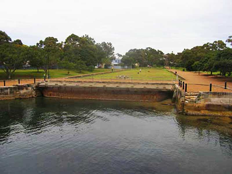 In 1957 the dock was closed and filled in. Remnants of the dock have been preserved in Mort Bay Park off Cameron Street, Birchgrove. These include the outline of the historic dry dock which is in fact the top of the dock wall and the steel caisson or dock gate. The nearby quarries at the head of Mort Bay which had supplied the stone for Balmains buildings and seawalls were taken over by shipyards after the dock was built. Today the shipyards have been replaced by blocks of luxury apartments which now cling to the towering quarry walls.