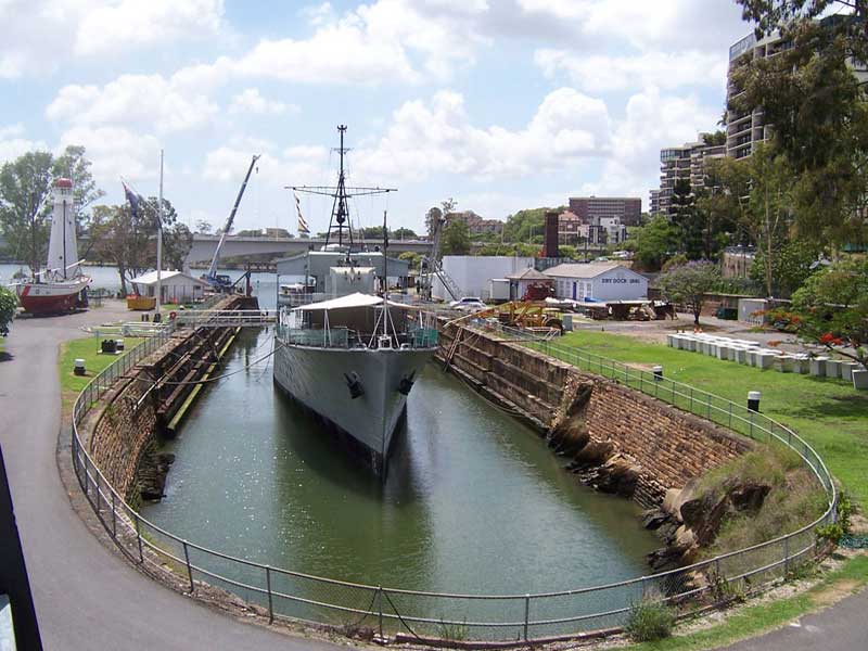HMAS Diamantina on display in the Queensland Maritime Museum's Dry Dock, South Brisbane