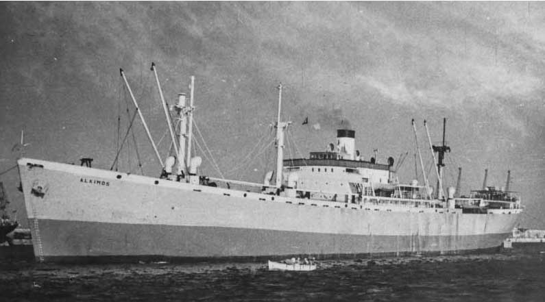 After being repaired by her new Costa Rican owners in 1953 she was sold again to a Greek shipping company and was renamed Alkimos - meaning "strong" - after a Greek God. As Alkimos, the ship plied the world's oceans for a decade without incident. But then, on 20 March 1963, during a voyage from Jakarta to Bunbury, the Alkimos hit Beagle Island Reef, north of Perth near the city of Geraldton. Having suffered heavy damage, it was towed to Fremantle, where it underwent repairs for two months.