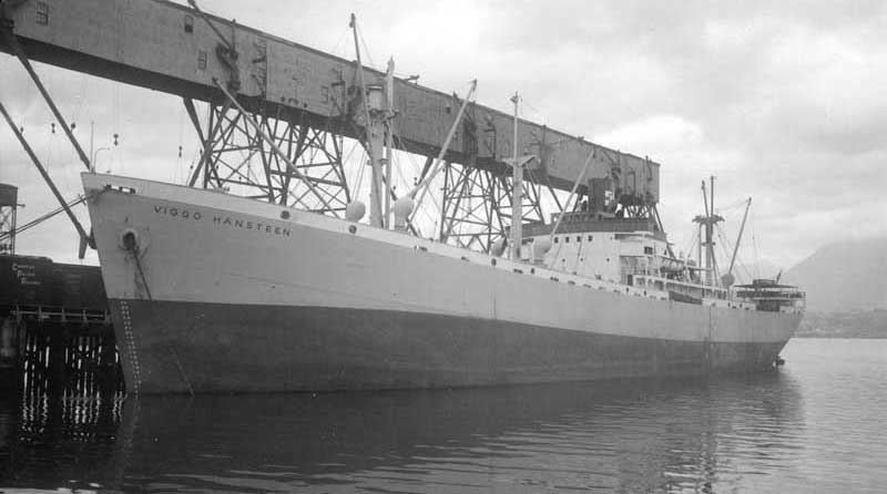 Later in 1944 the Viggo Hansteen was headed toward a Russian port when ahead of her two other merchant ships were bombed by German U-boats. The Viggo Hansteen was spared from attack but later became stranded on a reef not marked on any maps. She spent six hours there, a sitting duck until she broke loose under her own power, escaping unmarked.