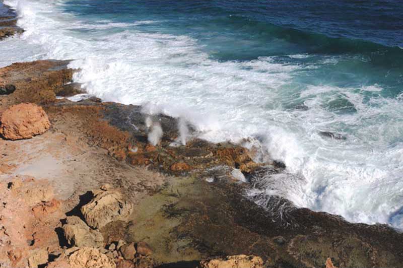 Something, perhaps a violent storm, had occurred and the Zuytdorp had been wrecked on this desolate section of the West Australian coast. If the ship had, without warning, struck the honeycombed reefs in turbulent water at the foot of the cliffs, there would have been no time to launch boats. The ship would have been flung on to its side, and few survivors would have got away. Anyone who succeeded would probably have been crushed against the reef platform or sucked into the blowholes underneath. The only hope for those on board would have been to scale the rigging (if the masts still stood) and drop onto dry land, or jump from the poop deck on to the reef platform.