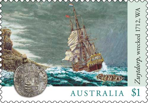 Australia Post released a commemorative Shipwrecks stamp issue on 29 August 2017. The isses presented three historically and archaeologically significant shipwrecks - the Zuytdorp, HMS Pandora and the PS Clonmel. The stamps feature paintings by maritime artists of each wreck event, together with a recovered relic, to show the context of each voyage.
