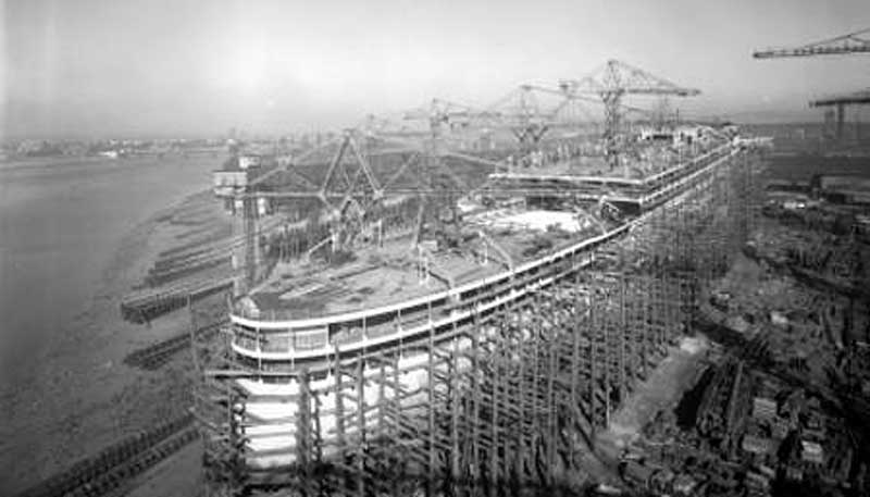 The giant Titan crane, the sister to the one then once stood at Sydney's Garden Island Naval Base, is one of the few relics remaing from the giant John Brown ship building facility than once stood on the banks of the Cyde at Glasgow, Scotland. The crane was used to place the engines in many iconic ocean liners built at the John Brown shipyards, including the Queen Mary, the original Queen Elizabeth, the Lusitania, HMS Hood and HMS Repulse. The last of these great ships to be built here was the Queen Elizabeth 2 (QE2). At its height, from 1900 to the 1950s, it was one of the most highly regarded, and internationally famous, shipbuilding companies in the world. Today, the Titan crane is used for bungie jumping.