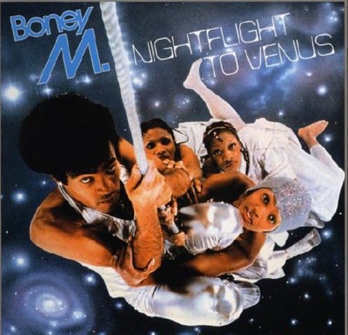 Night Flight to Venus was their third album, and without doubt their best - from it Boney M had three No.1 hit singles. These, all with borrowed themes, were Rasputin (features elements of both a Serbian and Turkish traditional song), Rivers of Babylon (based on the Biblical hymn Psalm 137. The song also has words from Psalm 19:14.) and Brown Girl In The Ring (a traditional Caribbean nursery rhyme that uses an arrangement from Malcolm's Locks "Brown Girl". The album also included a particularly good version of Neil Young's classic Heart Of Gold. In spite of all the 'borrowing' (stage performers, songs and arrangements) that went on, it all came together perfectly as a highly polished glamour act with a distinctive sound. I See A Boat On The River and Ribbons of Blue, my favourite Boney M songs, were never released on studio albums but as singles and on compilation albums only.