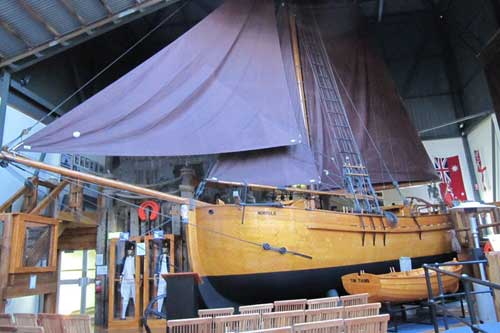 Situated in George Town, Tasmania, is the Bass and Flinders Centre, a museum telling the story of British navigators Matthew Flinders and George Bass and their visit to the coasts of Tasmania. In 1798 they sailed around Tasmania in HM Colonial sloop Norfolk and proved it was an island. In 1998 the voyage was re-enacted with a replica Norfolk built out of Huon pine and Celery Top pine. Not a single nail or screw was used - all the joints are held together with tunnels. The replica is a major exhibit at the museum.