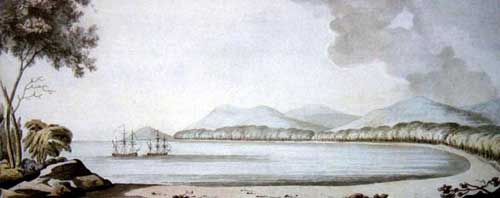 The success they had in finding plenteous supplies of water and timber during their week long sojourn at Adventure Bay on Tasmania's Bruny Island in late January 1777, combined with the peacefulness of their communication with the Tasmanian aborigines they encountered must have made its mark on Bligh's mind, as he would return to the bay a number of times again.