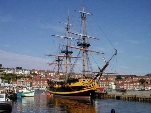 Replica of HMS Endeavour in its home town of Whitby, England