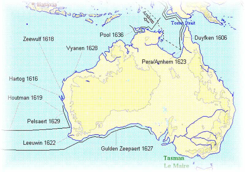 Jansz boarded the flagship anchored in Banda Roads upon his arrival at Banda and plans for the voyage were finalised. Jansz was instructed by Pieter de Carpentre (right) to explore the coast of New Guinea. Where possible contact was to be made with the natives. On 18th November 1605 the Duyfken set sail. After calling at Aru, Jansz continued sailing east, sighting the coast of New Guinea and following it in a south-easterly direction. On numerous occasions he sent parties ashore - one such party of eight men was wiped out by hostile Papuan natives. With his crew greatly depleted, Jansz continued on his journey. Not realising that beyond a group of islands and shoals he passed lay Torres Strait, Jansz pressed on until he sighted what he thought was more of the coast of New Guinea. In fact he was now following the coast of Australia south along Cape York Peninsula.