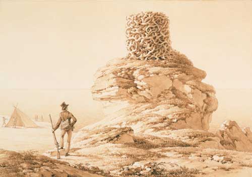 Pencil drawing of a gigantic bird s nest on Dirk Hartog Island, drawn by Adrien Taunay in 1818. State Library of WA