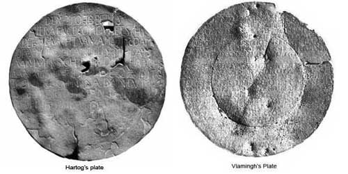 On 30th January 1697, de Vlamingh sighted another island which he thought to be Dirk Hartog's Island. The Geelvinck and Nijptang were sent ahead to circumnavigate the island and find a good anchorage. On 3rd February, the boats returned and the First Mate reported a startling discovery. When he had climbed a hill to get a better view, he had found a pole with a pewter plate half hidden in the sand. The writings on it stated that it had been left behind by Dirk Hartog in 1616. It was now certain that de Vlamingh had landed on Dirck Hartog island and the next day the ships sailed into a sheltered lagoon.