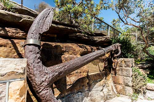 The Dunbar Historic Shipwreck is located beneath the South Head cliffs near to the Signal Station. The site appears to have been relocated several times since the 1857 loss. The anchor that forms the memorial was recovered from the wreck, identified as Dunbar, in 1910. The Dunbar Anchor Memorial comprises a large (approximately 4-metres) iron Admiralty pattern anchor, attached to the natural sandstone rock cliff face above the southern end of The Gap. The rock face has been worked to a vertical surface to accept the anchor which is fastened to it, with a remnant shackle attached. The memorial includes a stone plinth bonded to the wall detailing the date and purpose of the monument. A timber safety rail fence surrounds the memorial precinct.