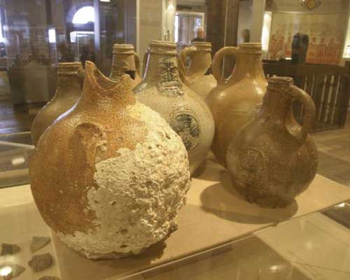 The Western Australian Museum has undertaken extensive excavation work at the Vergulde Draeck site and has painstakingly removed and conserved a wide range of material. The collection includes African elephant tusks, ballast bricks, beardman jugs, ceramic masks and medallions, clay tobacco pipes, bronze and brass utensils, various tools, glass bottles, an astrolabe and many silver coins. Many of these artifacts are on display at the Western Australian Museum Fremantle Shipwreck Galleries.