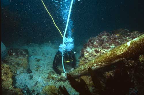 On the day of discovery, 15-year old Graeme Henderson, his father Jim (a reporter with the Daily News who later wrote articles on the find), Graeme's older brother Alan, and family friend John Cowen, wrested an elephant tusk from the deep and onto their boat, where another diver - refrigerator salesman Alan Robinson - who had claimed to have found the wreck in August 1957, but in a different location, was not present. Robinson had not been able to locate the wreck again.