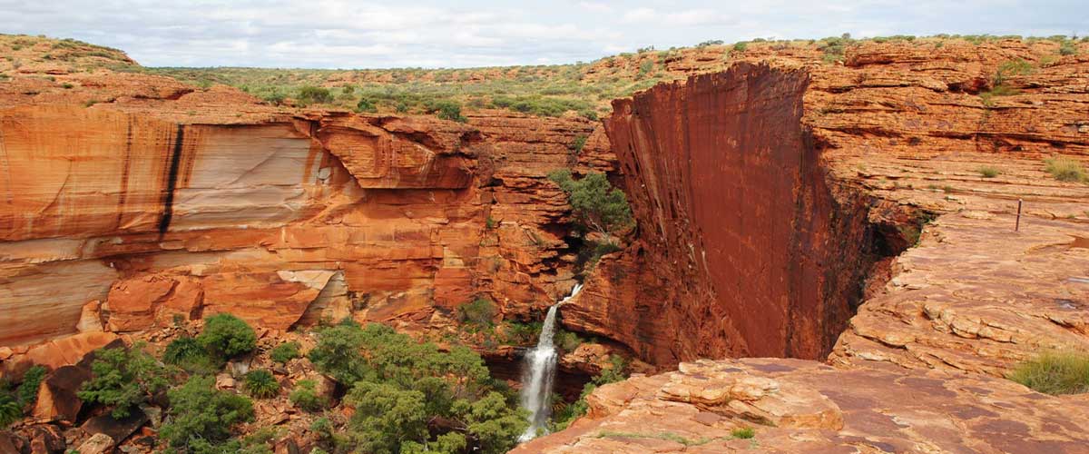 Some 325 km. south-west of Alice Springs, Kings Canyon is one of The Red Centre's most spectacular attractions. The huge, sheer walls of the canyon rise from the creek bed in which there are numerous rock pools and lush vegetation, including Cycad Palms, ancient in their origin. Kings Canyon is often included in a round trip to Ayers Rock, however the canyon area is amazing in its own right. It is easy to spend a day or more wandering around its vast area when exploring its unique beauty.tinct volcanic crater, which mysteriously changes colour for three months of the year.
