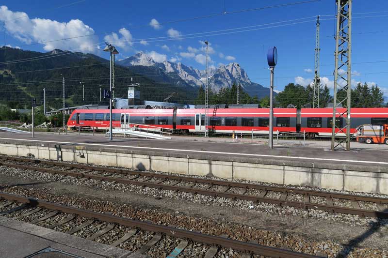 The conventional - and shortest - way to travel between Munich and Innsbruck by rail is through Kufstein. There is another way - it takes an hour longer but is more scenic, as it passes through Garmisch-Partenkirchen and the mountains around it, approaching Innsbruck from the west rather than the east, taking in the glorious mountainous landscapes along the Mittenwaldbahn. Garmisch-Partenkirchen is Germany's largest alpine resort, and makes the perfect stopover, be it for a few hours or a few days, on your way from Munich and Innsbruck.